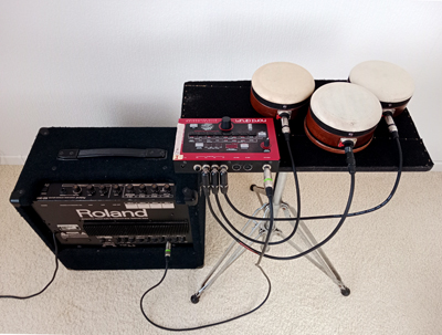 Das große Congapad wird mit einem großen Klinkenkabel direkt mit dem